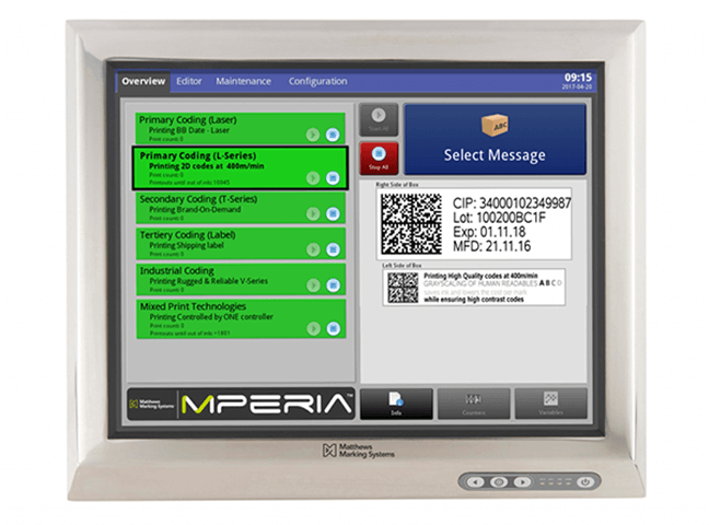 Le Contrôleur MPERIA ™ Standard à la capacité de supporter toutes les technologies d’impression VIAjet ™ pour un contrôle simultané de l’impression et est idéale pour le marquage et le codage primaire, secondaire et tertiaire. Les mises à niveau permettent un nombre virtuellement illimité d’appareils et de fonctionnalités VIAjet ™. Le contrôleur standard MPERIA ™ de 12 po est également disponible intégré dans un boîtier fermé.